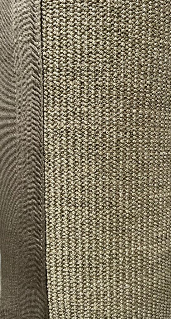 Material: Sisal Natural. Trama de tejido punto arroz fino en tono gris y borde de algodón ágata en 8 cm.