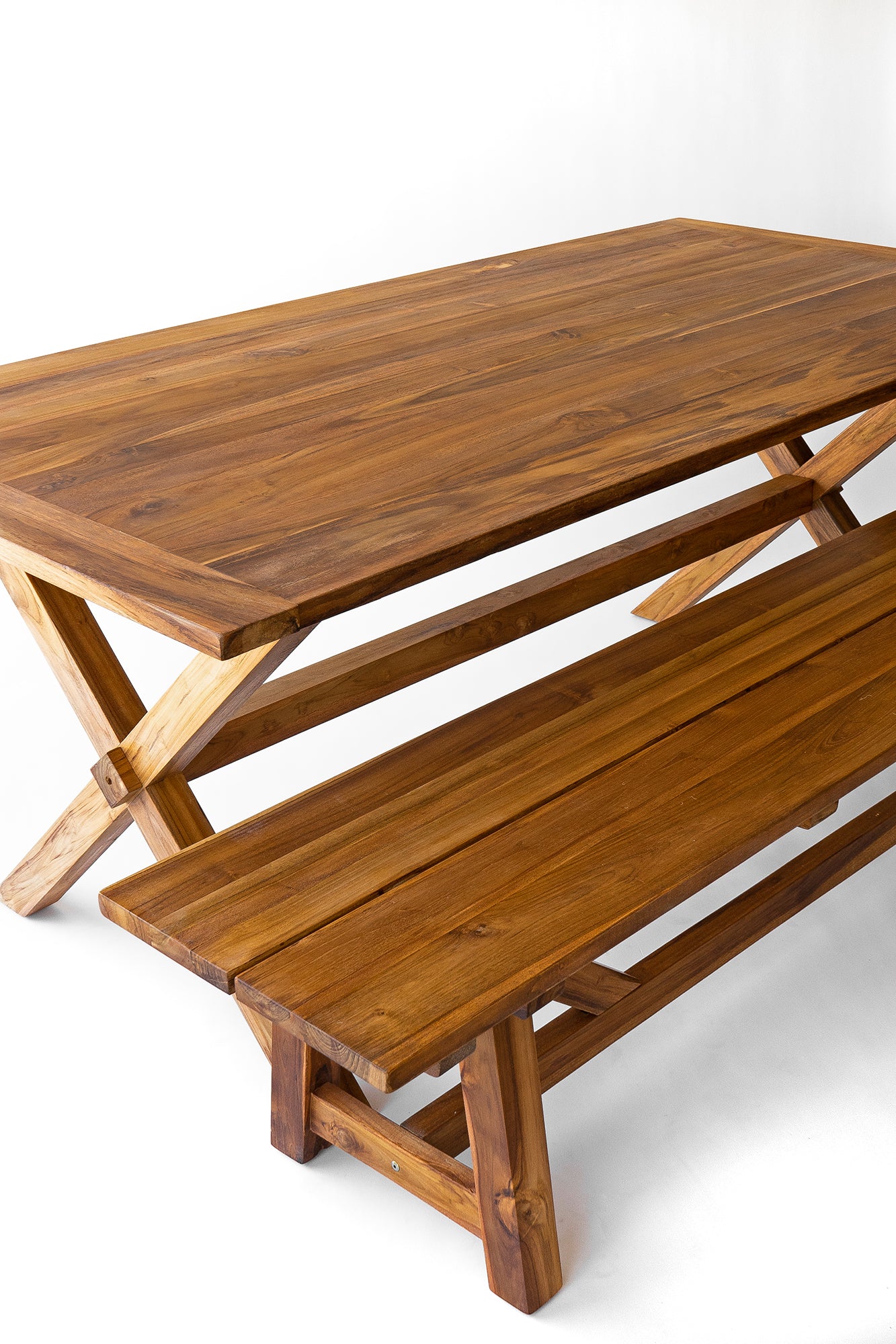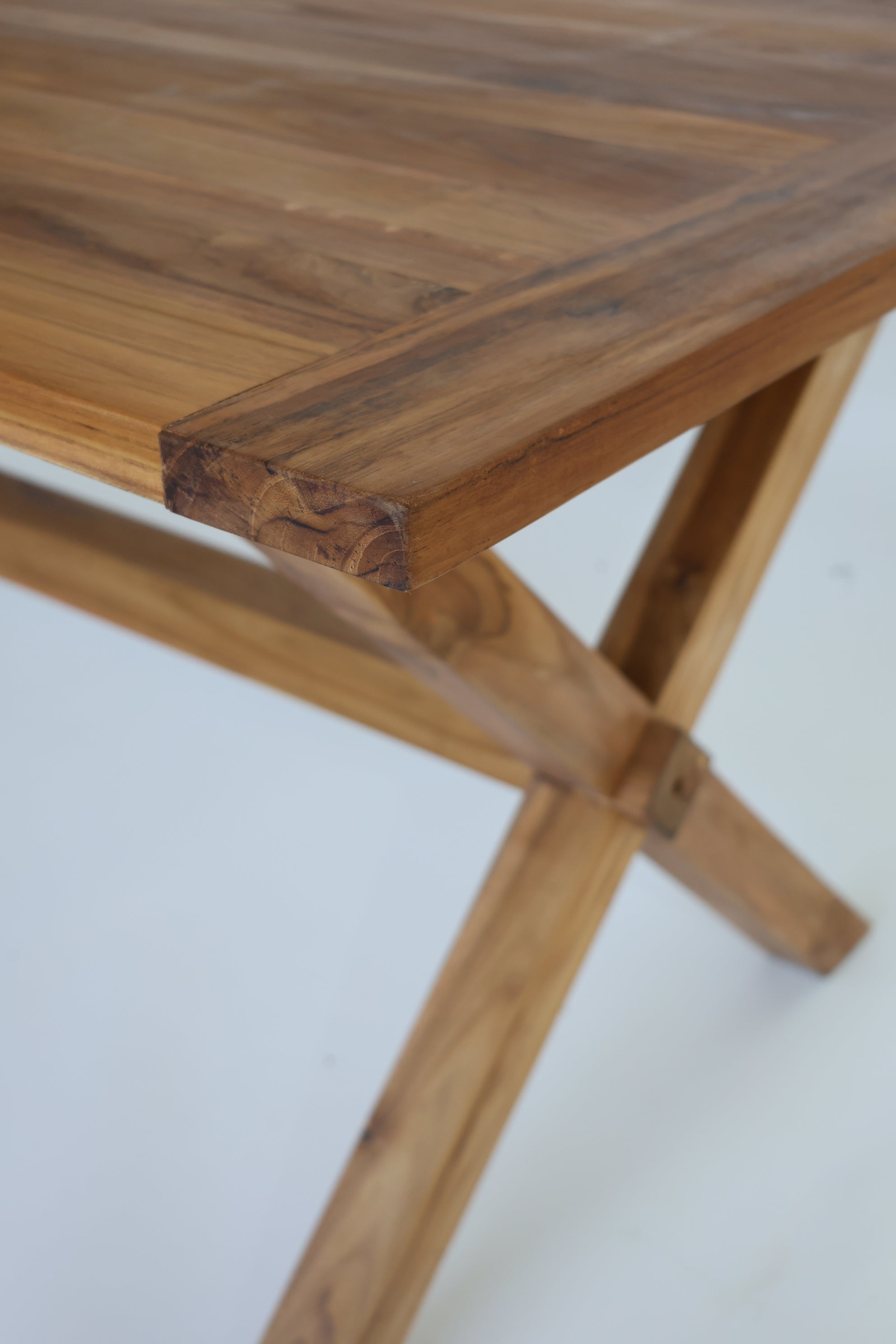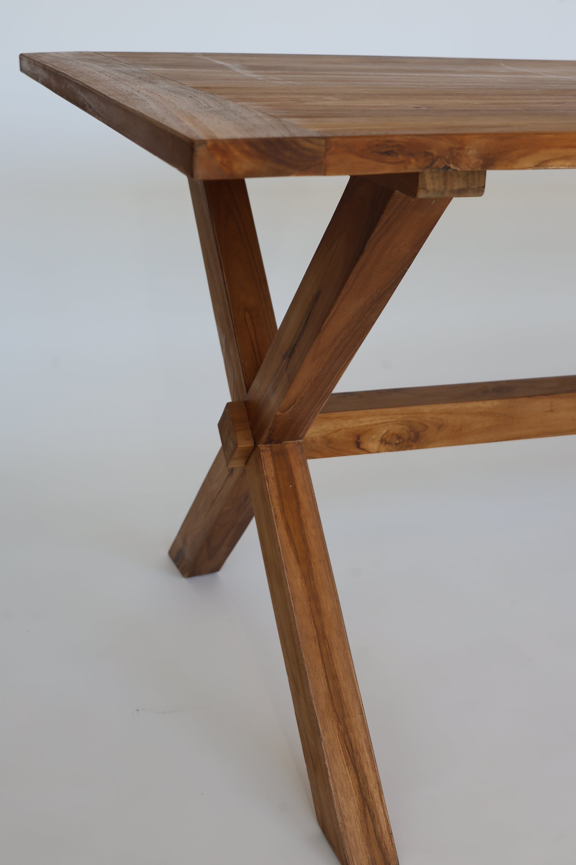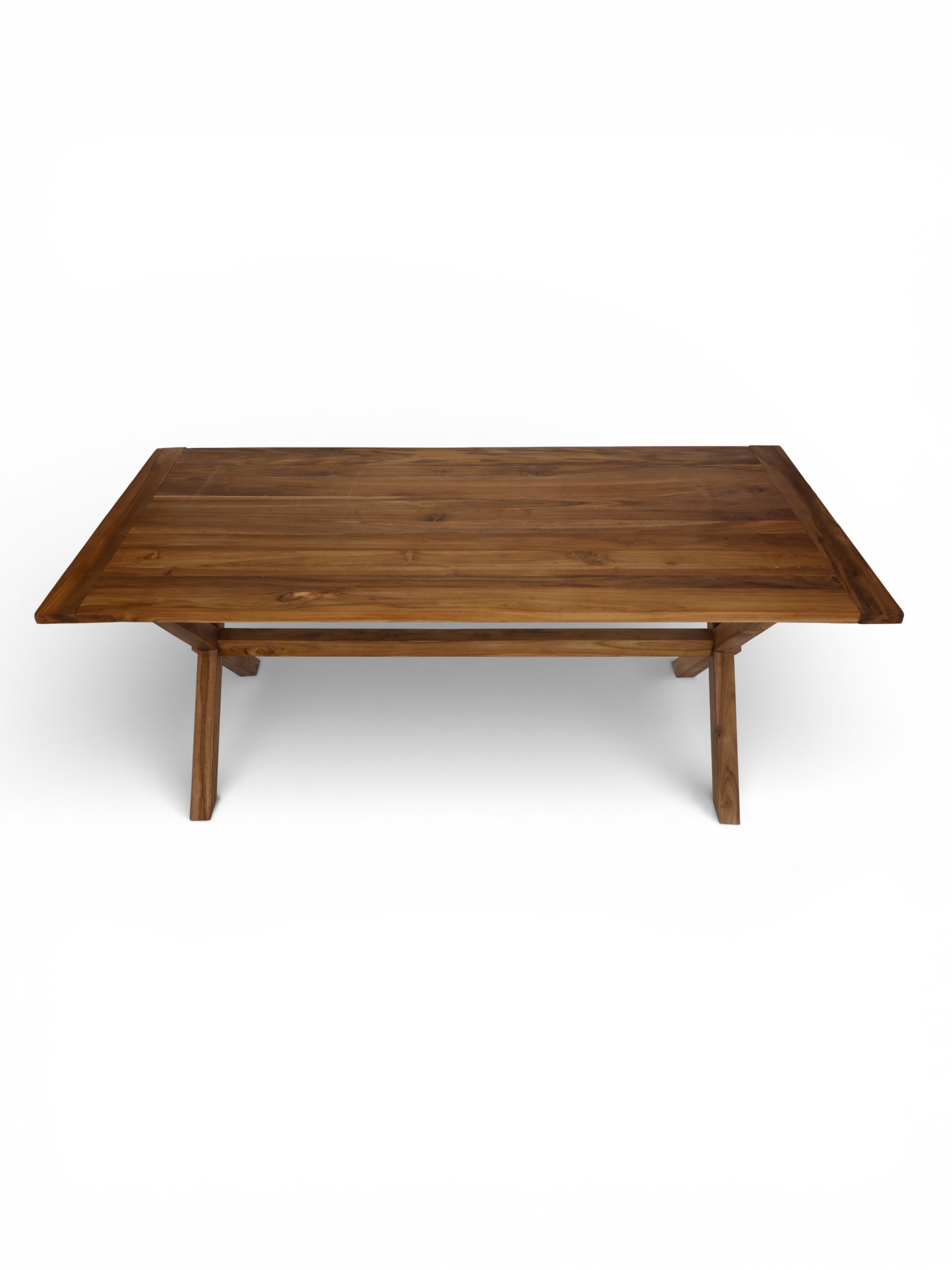Tanto para interior como exterior mesa de comedor con patas en cruceta y viga central