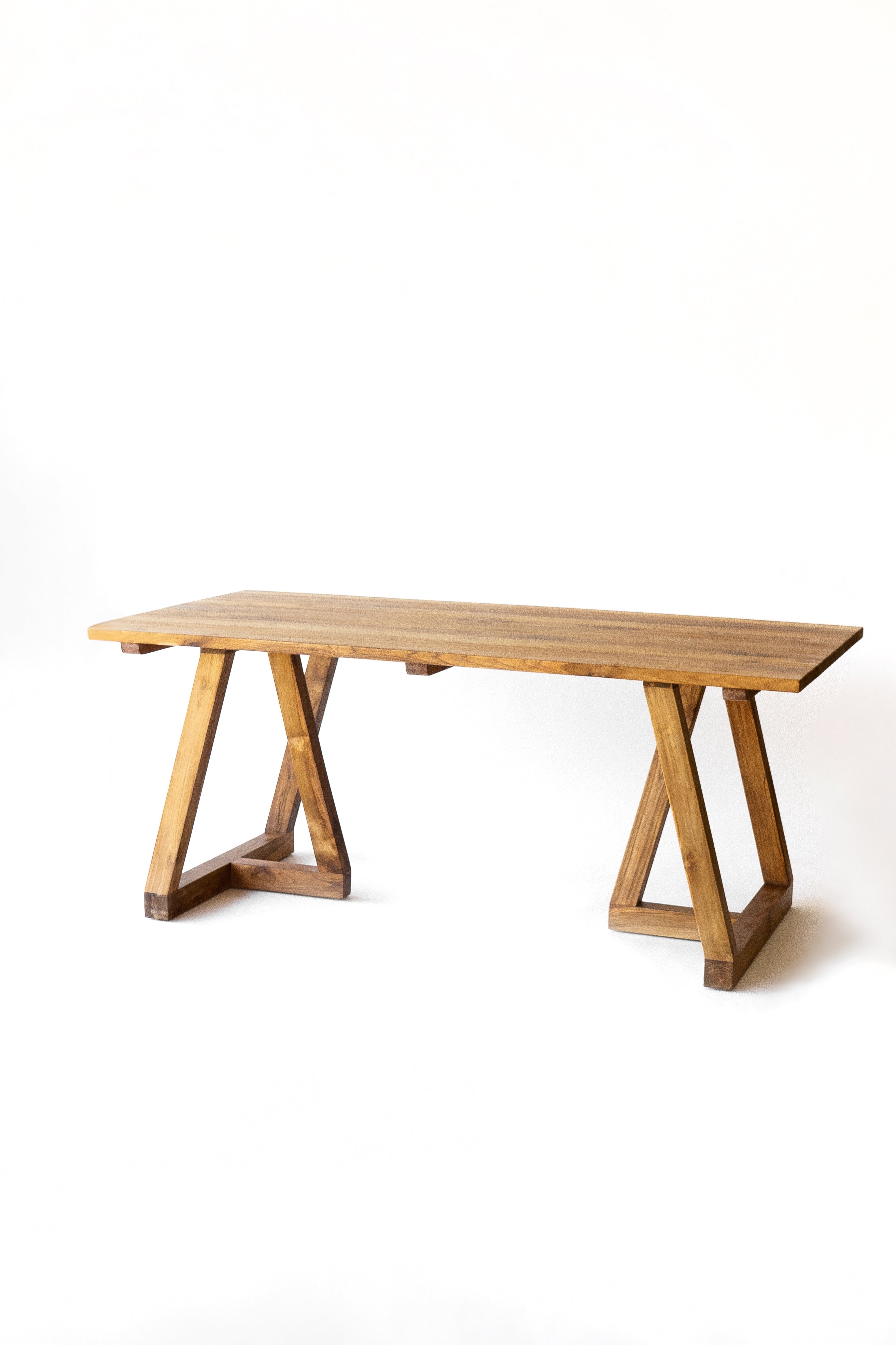 Tanto para interior como exterior mesa de comedor con patas en cruceta y viga central