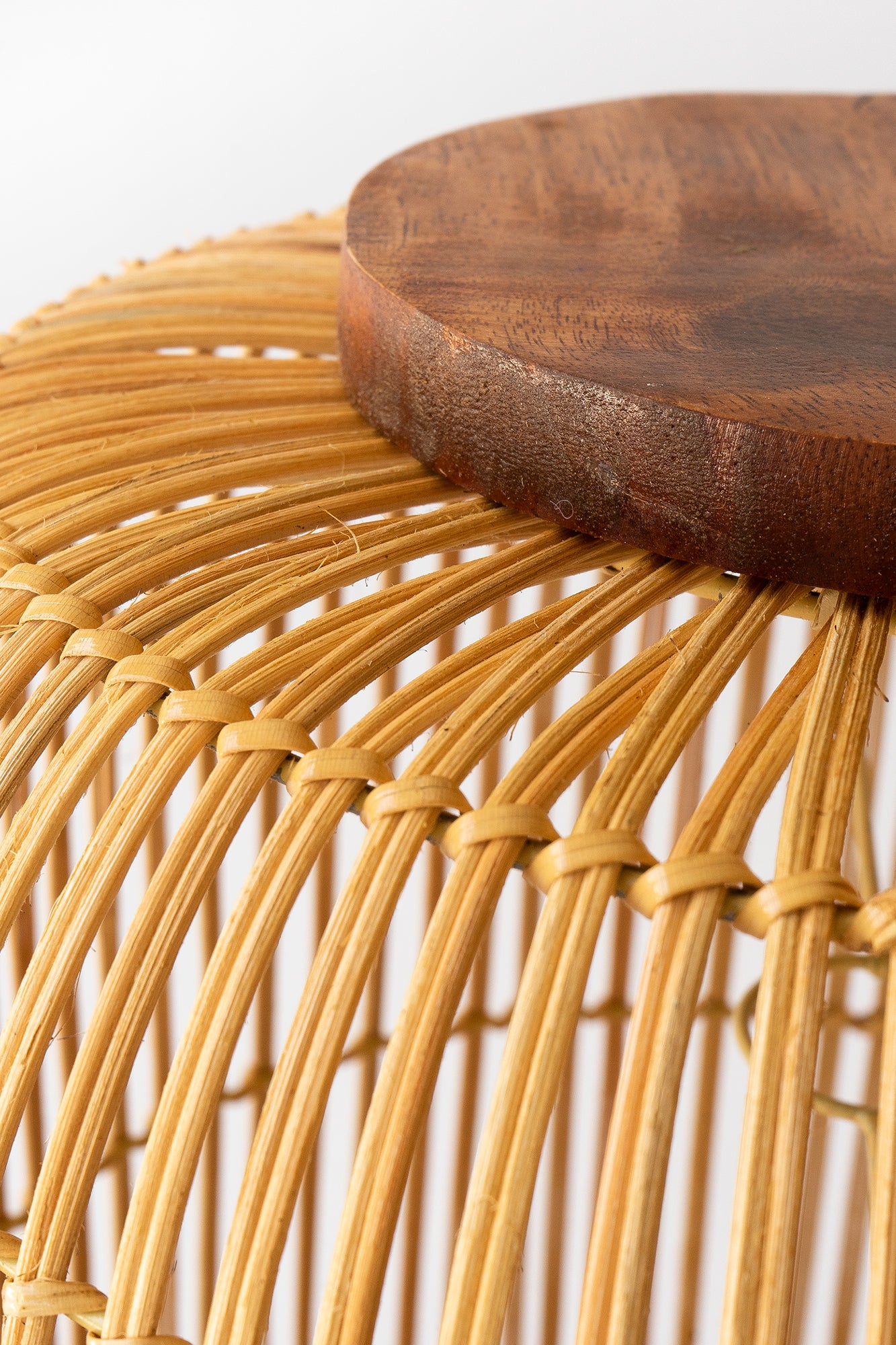 Pantalla de Ratán con madera de Teka para lámpara colgante, modelo Tidak en 3 medidas: