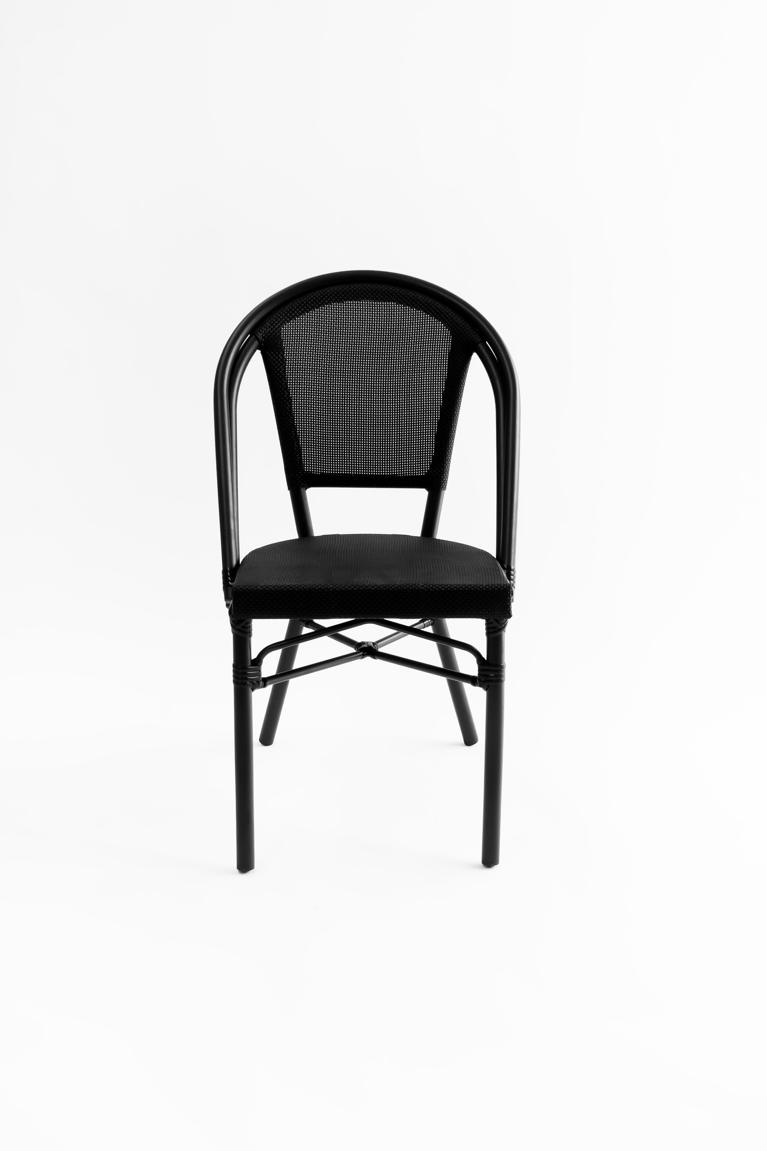 Firme y elegante, de gran comodidad. Ideal para exterior y cafetería. Apilable y fácil de limpiar.