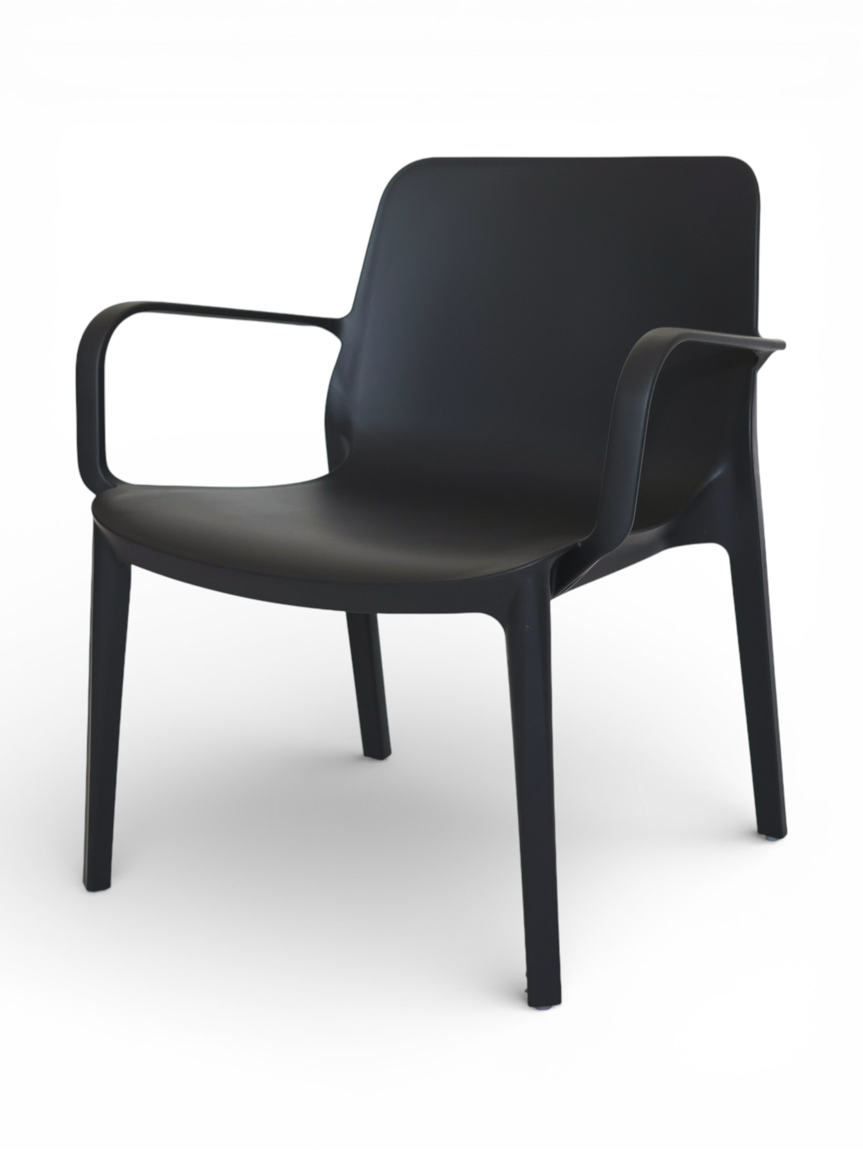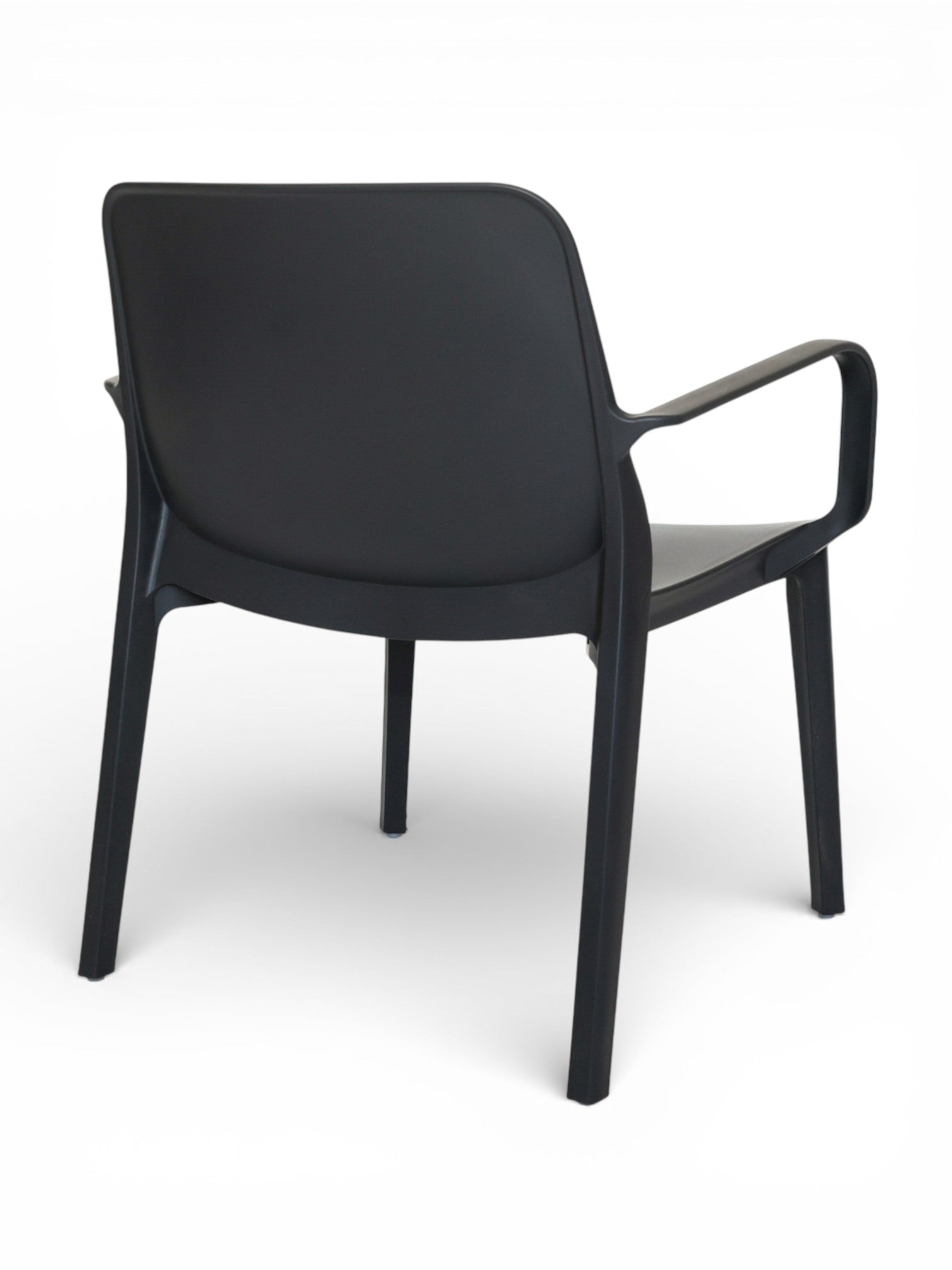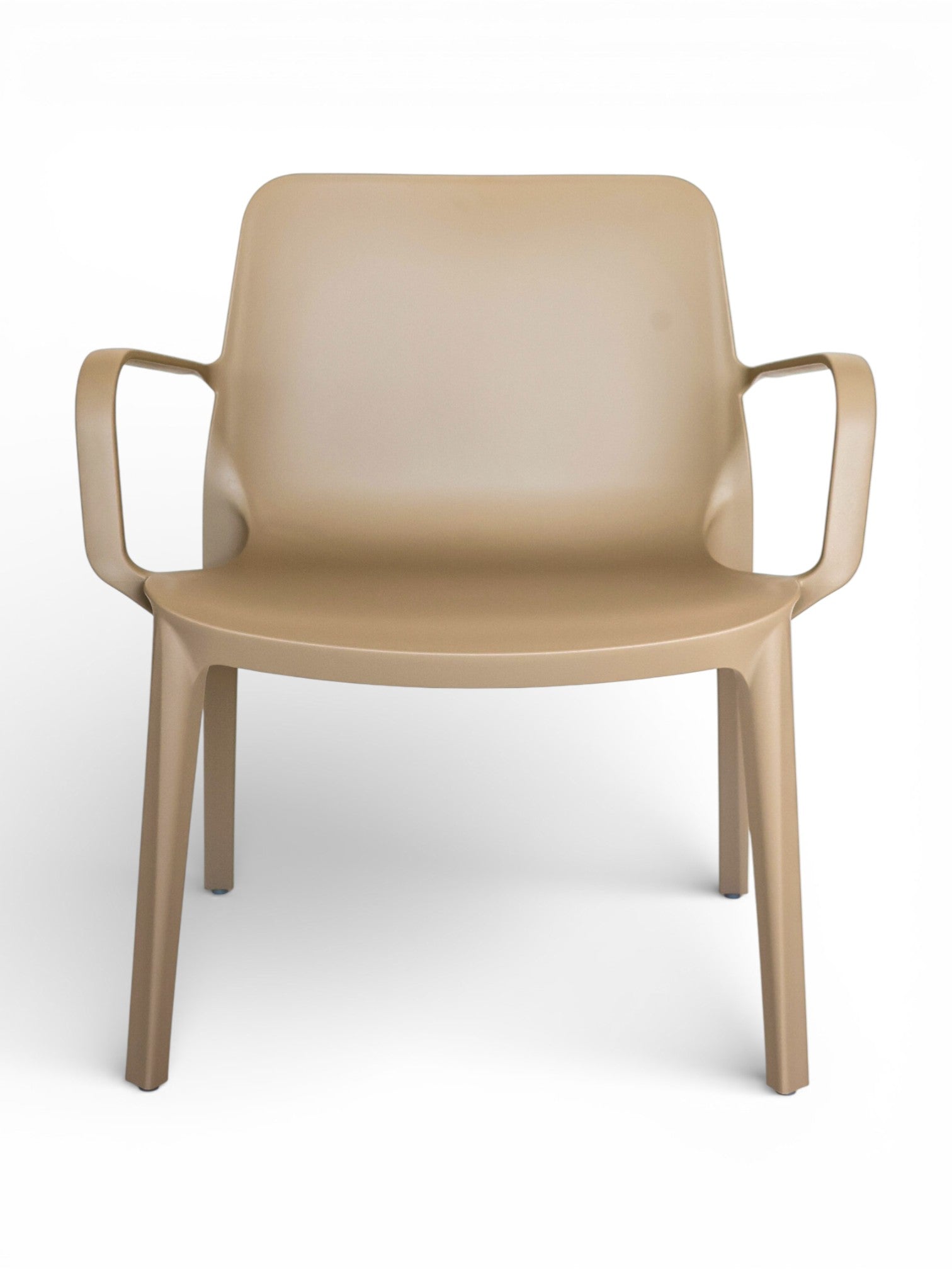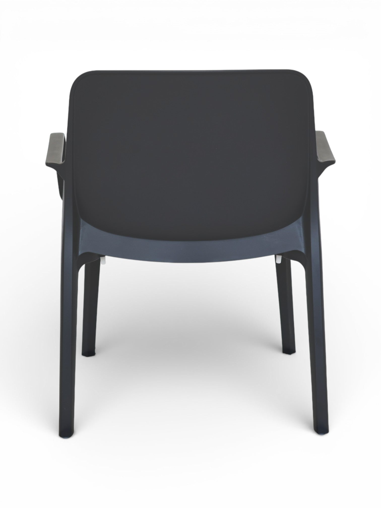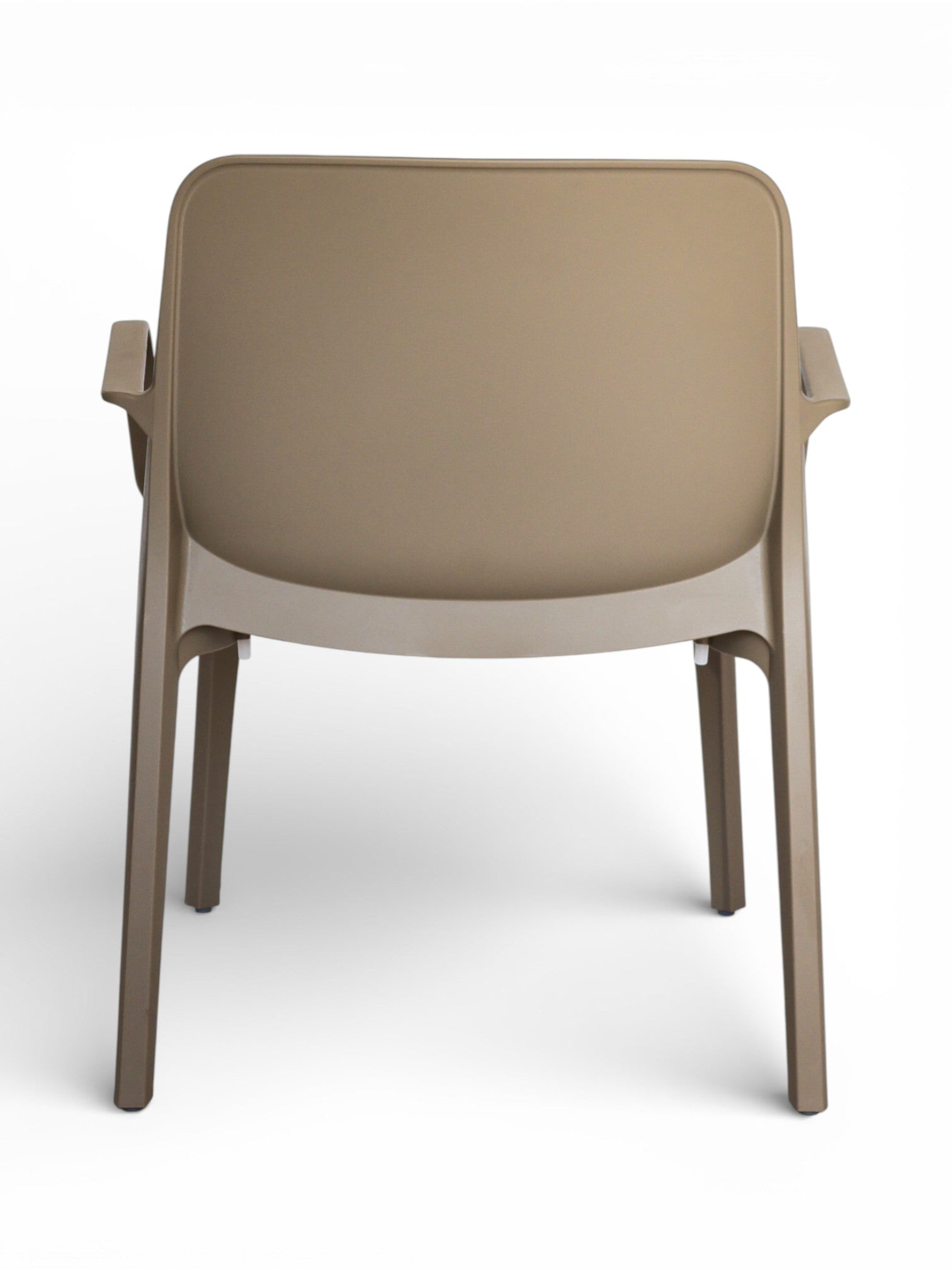 Estructura en tecnopolimero, reforzada en fibra de vidrio con moldeo por aire, en 2 tonos; taupe y negro.